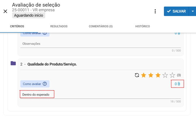 Salvar: Permite salvar os dados sem concluir a avaliação.