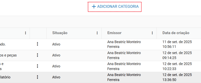 Para adicionar uma categoria é necessário ter a permissão de "Gerenciar categorias". Definido na aba Configurações > Papéis e permissões.