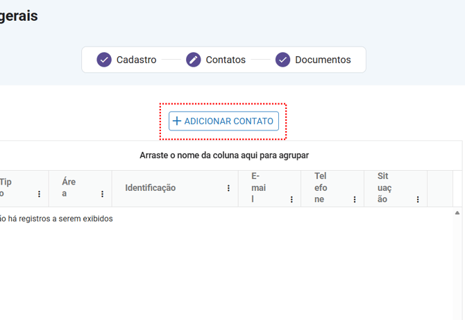 Clicando na opção de "Cadastrar contato" iremos inserir as informações do fornecedor: