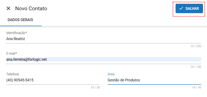 Área: Informe a área do contato.