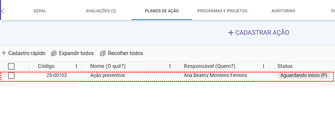 O registro dessas ações possibilita a centralização das informações, facilitando o acompanhamento e a gestão das atividades pelos responsáveis e dos usuários envolvidos, que podem monitorar facilmente o andamento das ações e as demais informações.