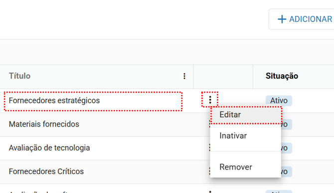 Para editar um segmento (avaliação) é necessário ter a permissão de "Gerenciar segmento (avaliação)". Definido na aba Configurações > Papéis e permissões.
