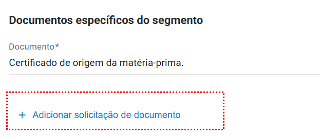 você pode incluir documentações adicionais que sejam necessárias para o segmento selecionado.