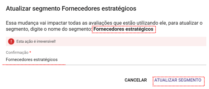 Ao editar um segmento (avaliação), as avaliações associadas serão atualizadas para refletir as alterações feitas, sem afetar as avaliações já concluídas.