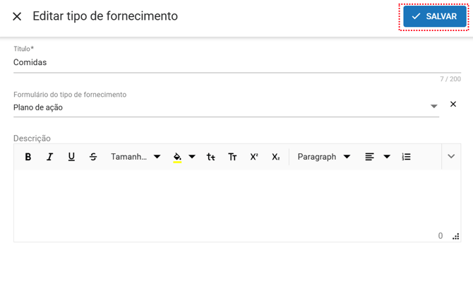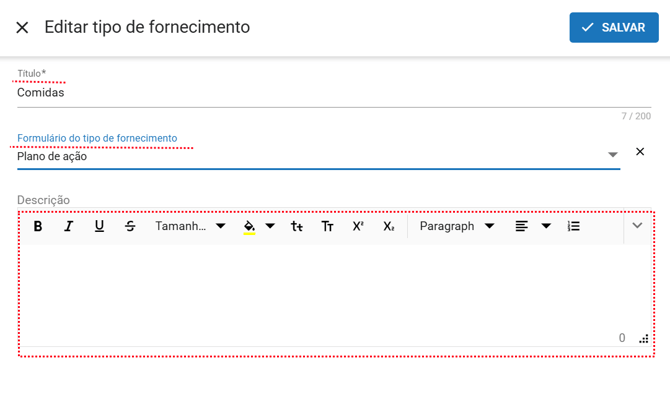 - Título: Se necessário modifique o nome do tipo de fornecimento