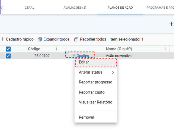 Passo a passo para editar uma ação