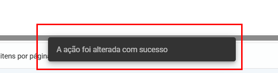 O sistema fechará a janela e exibirá uma notificação informando que a ação foi alterada com sucesso.