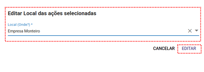 Após selecionar a opção "Local" na edição é necessário informar o local que será definido na ação e salvar a alteração clicando em