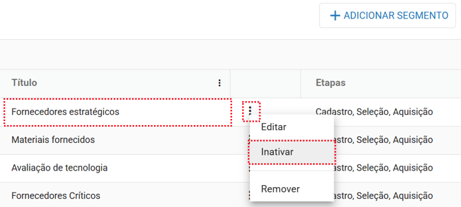 Passo a passo para inativar um segmento