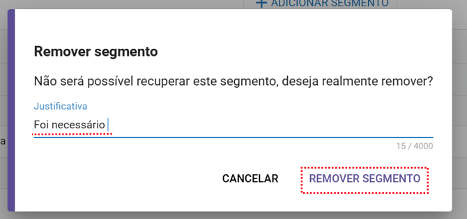 Passo a passo para remover uma Segmento (Avaliação)