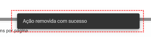 Essa alteração gera uma notificação na parte inferior da tela informando que a ação foi removida com sucesso: