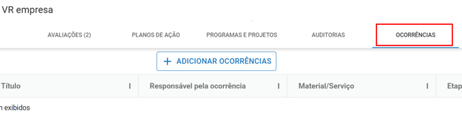Para vincular ocorrências ao fornecedor é necessário que a unidade tenha o módulo "Ocorrências" contratado e que o colaborador tenha o módulo "Ocorrências" habilitado para o seu usuário.