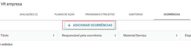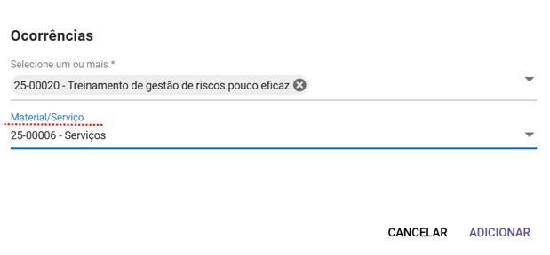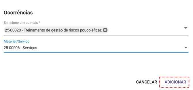 Após selecionar a(s) ocorrência(s) e opcionalmente o material/serviço desejado, clique em