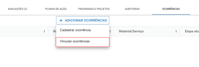 Para vincular ocorrências, clique em