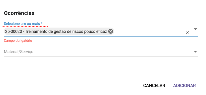 Se um material recebido apresentar defeitos ou não atender às especificações, você pode registrar a ocorrência e vinculá-la diretamente ao material do fornecedor. Da mesma forma, se um serviço não for executado conforme o esperado ou for entregue fora do prazo, é possível vincular o serviço prestado à ocorrência, garantindo o registro detalhado do problema e facilitando sua resolução.