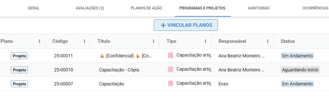 Para vincular os programas e projetos ao fornecedor é necessário que a unidade tenha o módulo "Planos" contratado e que o colaborador tenha o módulo "Planos" habilitado para o seu usuário.