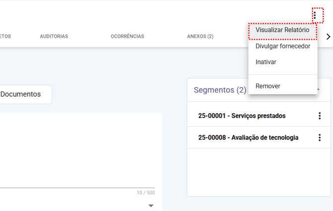 do fornecedor escolhido e selecione a opção “Visualizar relatório”: