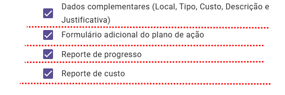 - Informações adicionais sobre cada plano de ação, como localização, tipo, custo estimado, descrição e justificativa.
