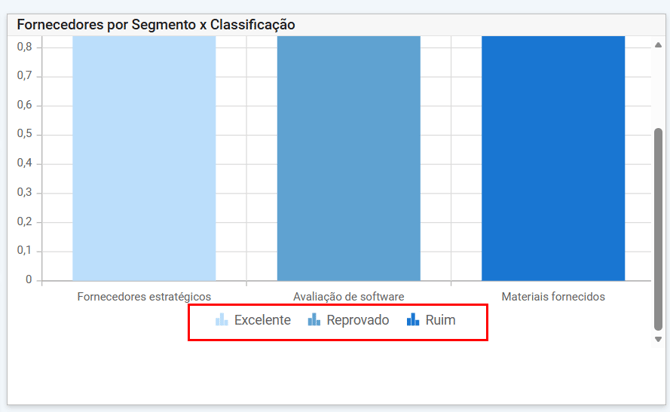 As legendas serão criadas com base nas opções cadastradas no módulo de fornecedores e no contexto da dashboard, ficando disponíveis na parte inferior da tela.
