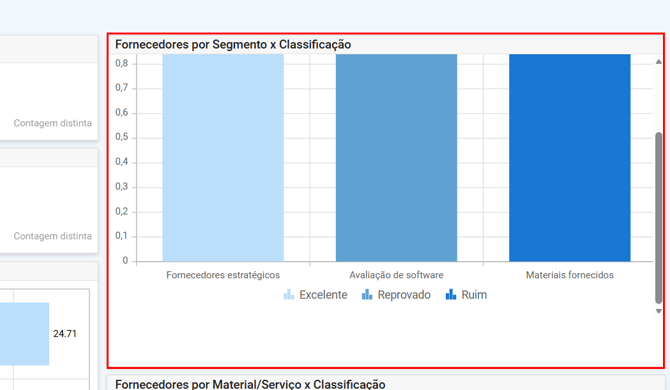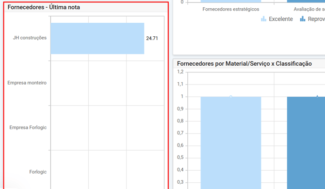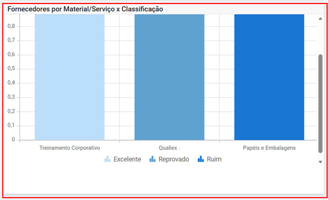 - Fornecedores por Material/Serviço X Classificação: Acompanhe o resultado das avaliações dos materiais/serviço por classificação.