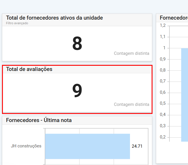 - Fornecedores - Última nota: Acompanhe a nota da última avaliação do fornecedor.