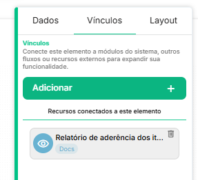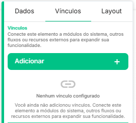 Os vínculos de nível macro (do fluxo como um todo) são gerenciados na aba “Vínculos” da ficha do fluxo (fora do editor).