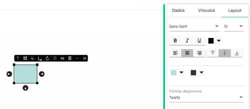 O painel lateral direito é exibido automaticamente quando uma forma é selecionada no modo desenho.Ele centraliza as informações e configurações da atividade escolhida, permitindo que o usuário visualize, edite e personalize suas propriedades sem sair da área de edição.