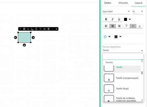 - Formas disponíveis alterar o tipo (ex: tarefa, subprocesso, evento, múltiplas instâncias etc.)