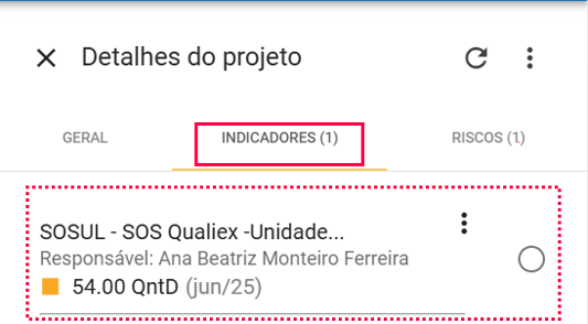- Indicadores: métricas vinculadas ao projeto que ajudam a medir resultados, desempenho ou impacto.