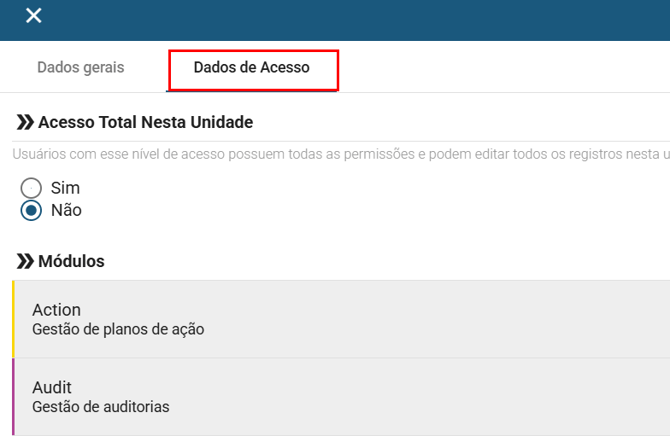 Acesso total nos módulos