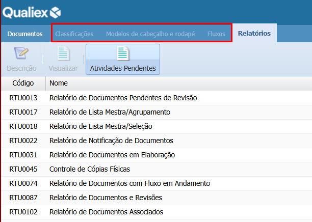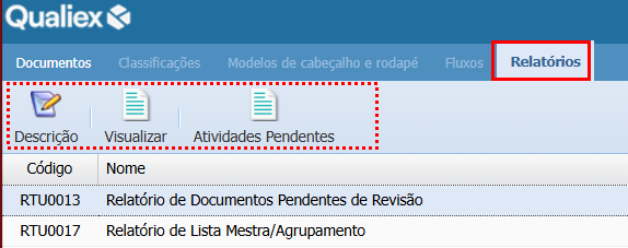 Visualizar a descrição de todos os relatórios