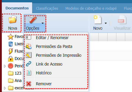Opções dos documentos