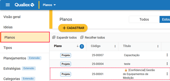 Para isso, selecione o projeto desejado e acesse a aba "Planos":