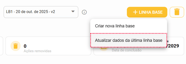 Escolha a opção "Atualizar dados da última linha base"