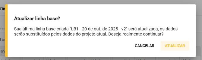 3. Leia com atenção a mensagem informada, e após ter certeza que deseja atualizar a linha base, clique no botão "ATUALIZAR"