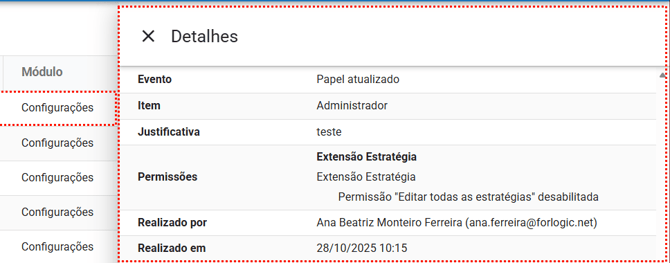 - Realizado em: Data e horário que foi realizado essa alteração.