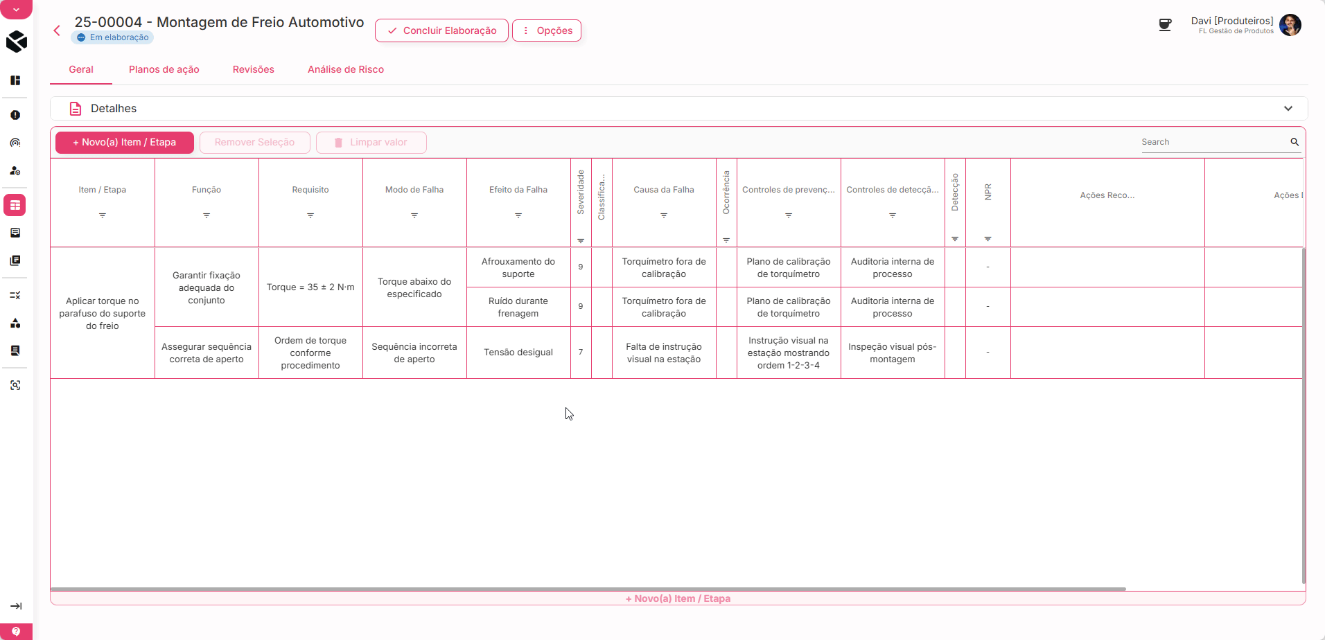 🧩 Novo módulo Riscos FMEA!