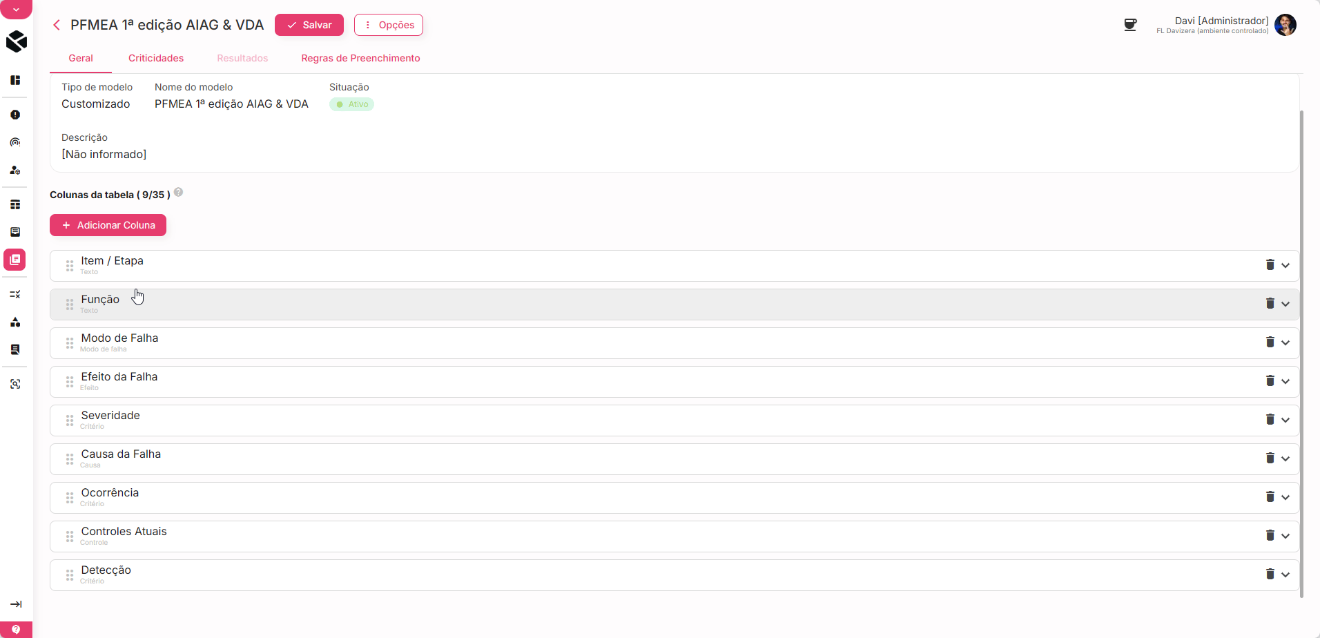 - Criação e personalização de modelos de FMEA