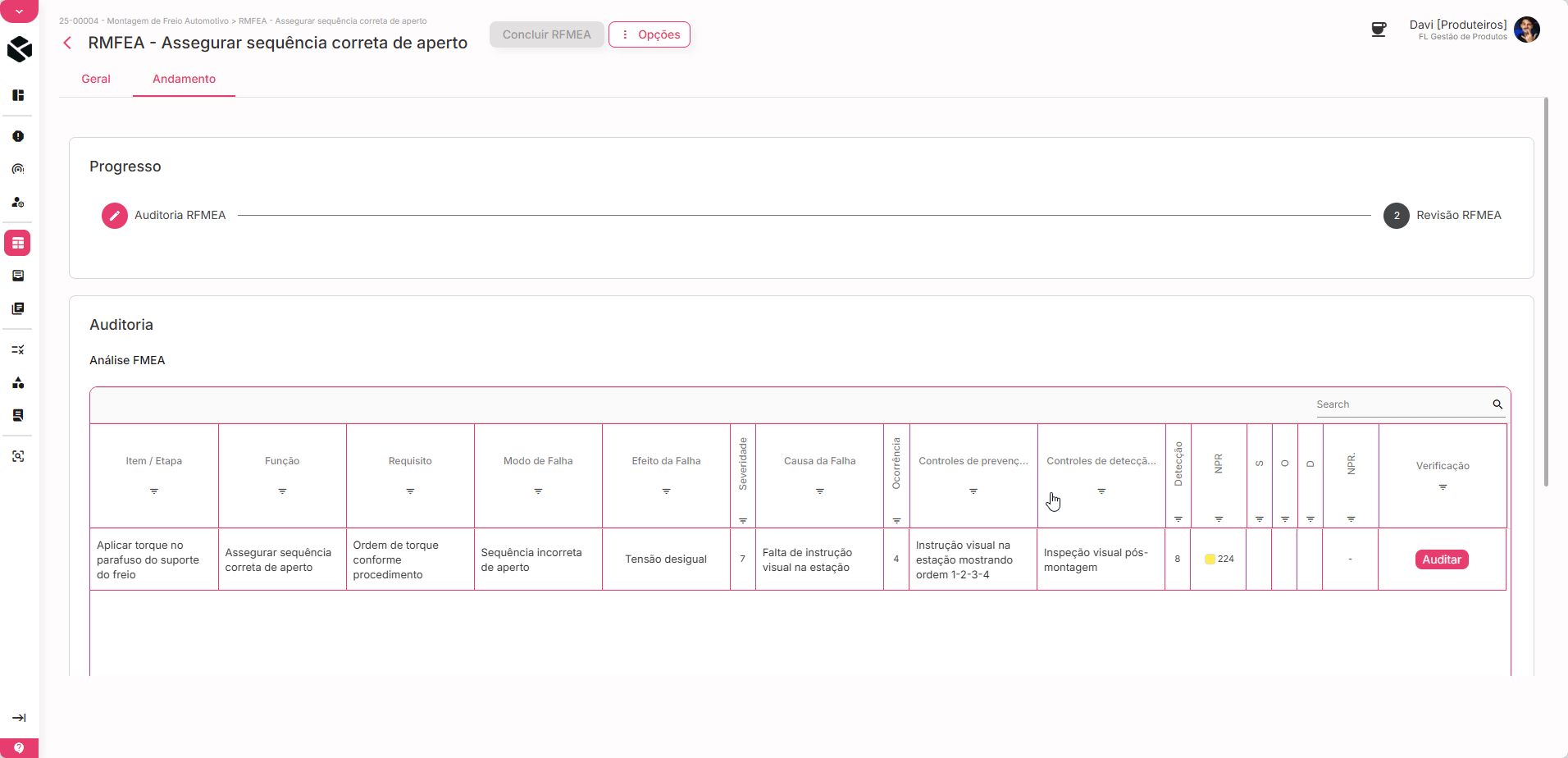 - ⚠️ Falta de padronização entre áreas e tipos de FMEA (Produto, Processo, Reverso);