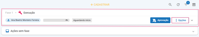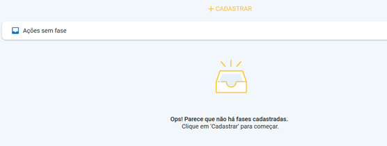 Quando acessamos a visualização de fases, temos um organizador com todas as ações sem fase! Isso irá facilitar na visualização e na atribuição de ações à suas fases.