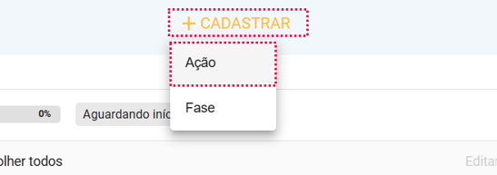 Exemplo: Cadastrando uma nova ação e escolhendo a fase: