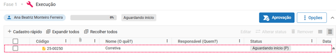 • Se todas as ações estiverem com o status "Aguardando início": A fase estará aguardando início.