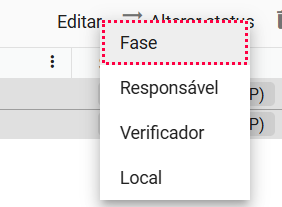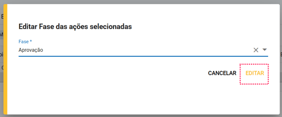 Após isso, para finalizar devemos escolher a fase que queremos atribuir para as ações selecionadas e confirmar.