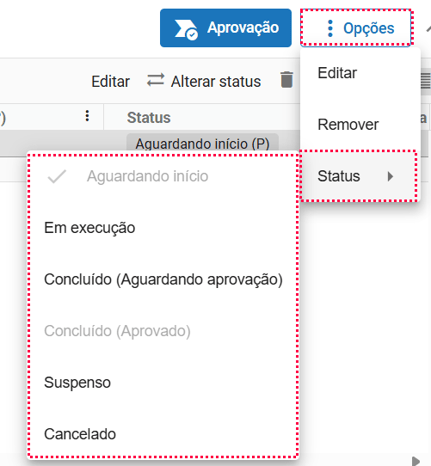 🔹 Usado quando há um fluxo de aprovação configurado. -