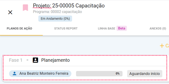 👀Lembre-se: para que a sua fase seja exibida, o modo de visualização do projeto deve estar configurado em “Fases”. Clique aqui e veja como alterar a visualização.