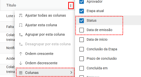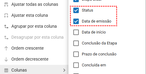 Você pode ajustar as colunas conforme sua necessidade, mantendo apenas aquelas que realmente facilitam o seu dia a dia. Para adicionar uma nova coluna, basta clicar no menu de contexto