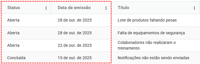 - Tipo: Mostra o tipo vinculado à ocorrência. Exemplo: Não conformidade.