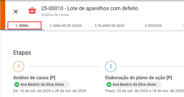Assim que você selecionar a ocorrência, será direcionado para a aba geral, onde poderá fazer a alteração desejada.