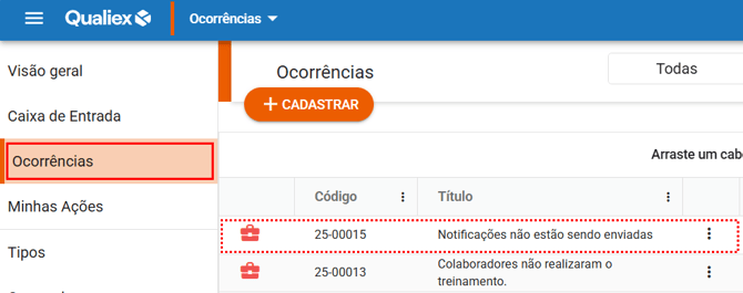 Para atualizar as informações gerais de uma ocorrência, localize e acesse a ocorrência desejada no sistema.