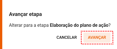 Ao escolher a etapa para a qual deseja mover a ocorrência, será exibida uma janela solicitando a confirmação da alteração clicando em "Avançar".